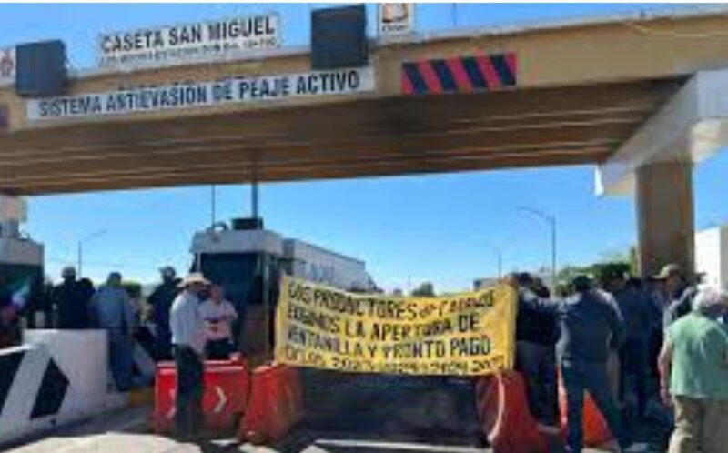 San Miguel, Zapotitlán, Ahome, Sinaloa, 27 de octubre de 2025. Mientras una comisión del Frente Nacional para la Recuperación del Campo, negocia mejores condiciones para la producción de alimentos en México, los agricultores sinaloenses se mantienen en espera de sus resultados y acordaron liberar las casetas de peaje a la circulación suprimiendo el cobro de las cuotas.