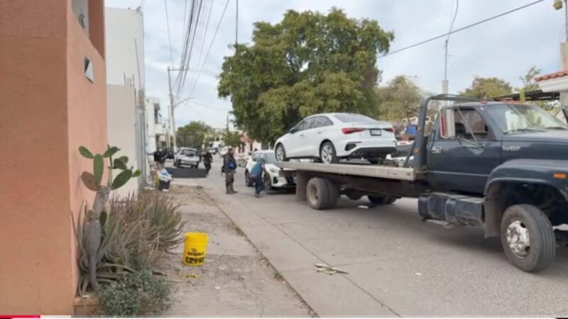 Entre ellos un automóvil Audi blanco, modelo reciente al parecer blindado y otro modelo Nissan, blanco también.