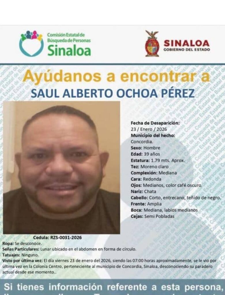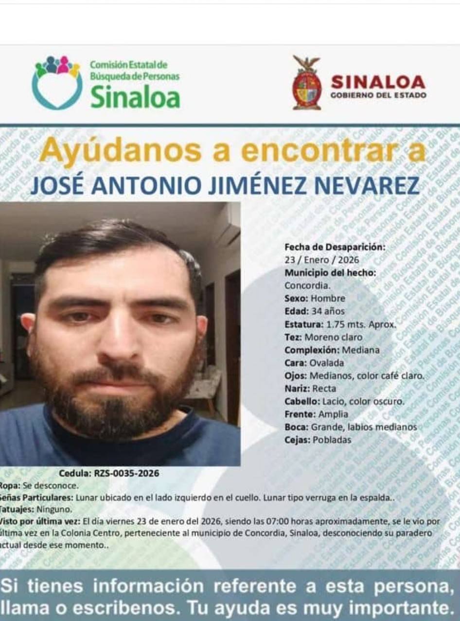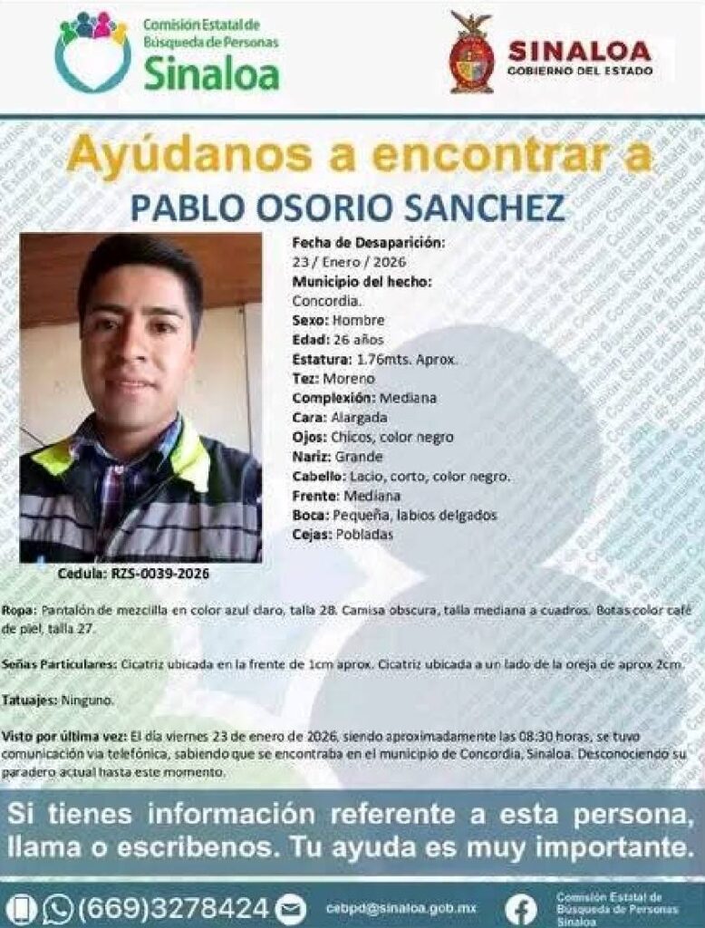 Culiacán, Sinaloa, 28 de enero de 2026. La Comisión de Búsqueda de Personas Desaparecidas dependiente de la Fiscalía de Justicia de Sinaloa, emitió fichas de búsqueda para localizar a tres de un total de 10 trabajadores de la mina Vizsla, que se encuentran desaparecidos desde el pasado 23 de enero en la ciudad de Concordia, Sinaloa.
