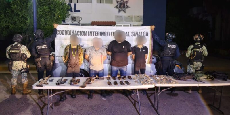 «Luego de los hechos registrados en el sector norte de Culiacán, la noche de este martes, los elementos de la Secretaría de Seguridad Pública de Sinaloa, a través del Grupo de Operaciones Especiales Sinaloa de la Policía Estatal Preventiva, en coordinación con el Ejército Mexicano, la Guardia Nacional, la Secretaría de Marina, la Secretaría de Seguridad y Protección Ciudadana, la Fiscalía General de la República y la Fiscalía General del Estado, implementaron un amplio operativo que dio como resultado la detención de cuatro civiles», informó la SSP en un comunicado.