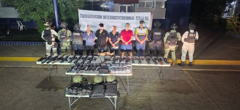 Culiacán, Sinaloa, 06 de noviembre de 2025. Un presunto pistolero quedó abatido y cinco fueron detenidos, luego de un enfrentamiento ocurrido esta tarde entre elementos de la Secretaría de Seguridad Pública de Sinaloa, a través de la Policía Estatal Preventiva, el Ejército Mexicano, Guardia Nacional y Secretaría de Marina, en el fraccionamiento Cataluña, sector Espacios Barcelona, al norte de Culiacán.