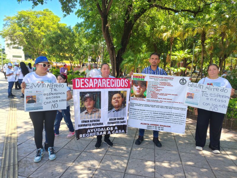 En la manifestación de este domingo, también estuvieron hermanos y familiares de Edwin Alfredo Cervantes Vizcarra, de 16 años, desaparecido el 18 de enero de 2025 lo mismo que Óscar Darío Cervantes Sainz.