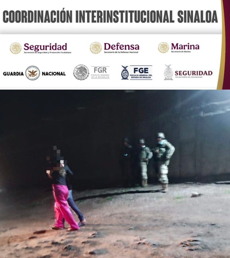 Culiacán, Sinaloa, 28 de agosto de 2025. Elementos del Ejército Mexicano, en coordinación con la Guardia Nacional, Secretaría de Marina y Secretaría de Seguridad y Protección Ciudadana, lograron rescatar a una mujer que había sido privada de su libertad en la colonia Ampliación El Barrio.
