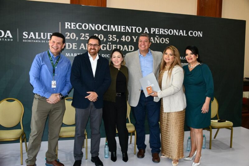 Con la representación del gobernador Rubén Rocha Moya, y acompañada por el secretario de Salud, doctor Cuitláhuac González Galindo; por el coordinador del IMSS Bienestar en Sinaloa, doctor Julio César Quintero Ledezma; y por la secretaria general de la Sección 44 del Sindicato Nacional de Trabajadores del Sector Salud (SNTSA), Arcelia Prado Estrada, la secretaria Bonilla Valverde felicitó a todos los trabajadores galardonados, a quienes entregó un reconocimiento, una medalla alusiva a su antigüedad laboral y un estímulo económico.