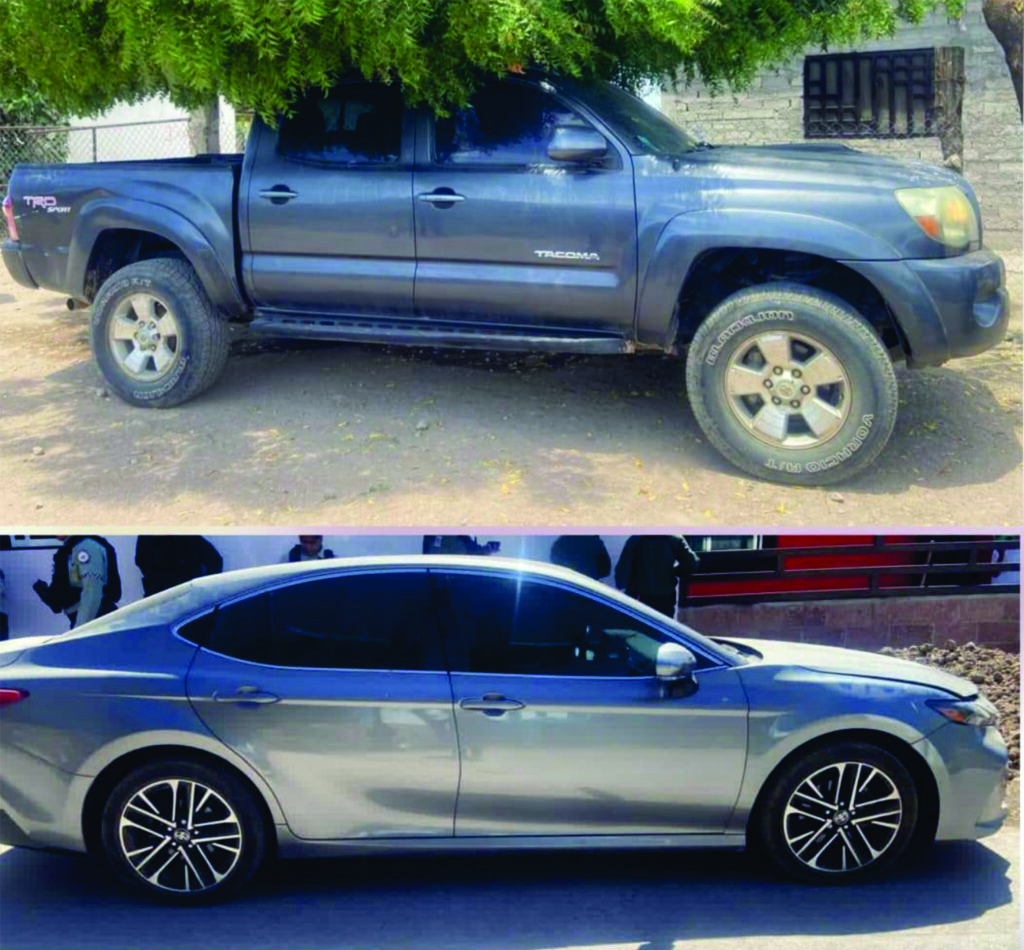 • 1 vehículo marca Toyota, línea Tacoma, con alteraciones en el número de serie y reporte de robo.
