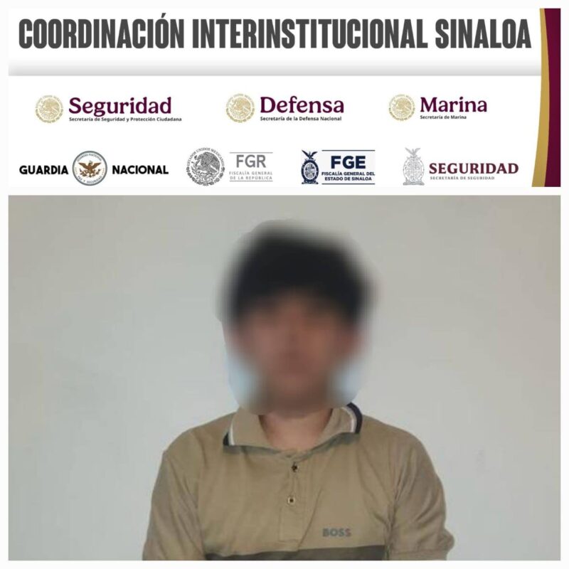 Culiacán, Sinaloa, 07 de enero de 2026. Un menor de edad fue detenido por elementos del Ejército Mexicano, en coordinación con la Guardia Nacional, Secretaría de Marina y Policía Estatal Preventiva, luego de una persecución y enfrentamiento con un grupo de pistoleros que tras balacear a una mujer, también agredieron a las autoridades y lograron huir metiéndose entre las casas.